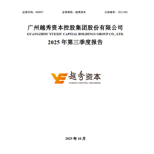 Yuexiu Capital Holding Group 2025年三季度報告